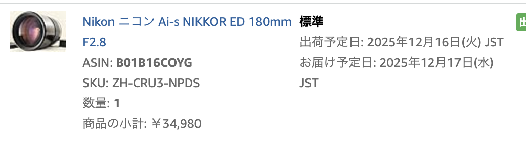 これもアマゾン前提で仕入れ。購入してくれたのは外人さん。多分普通に使うのでしょう。業者といい外人顧客様には助けられているのがECの中古カメラ市場の現状ですね。